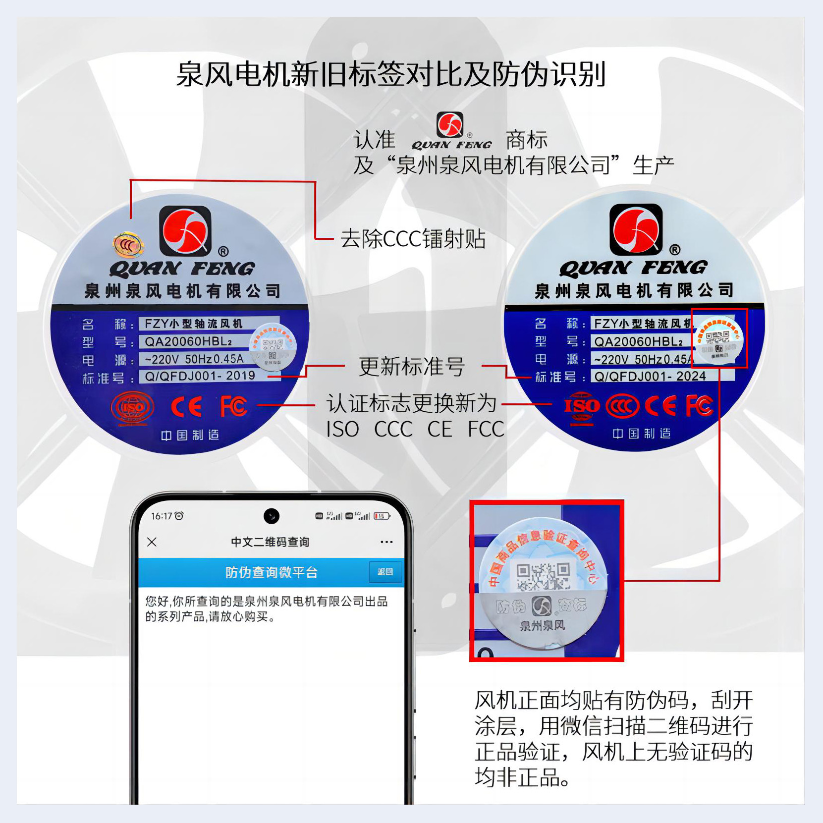 泉風(fēng)軸流風(fēng)機標(biāo)簽及標(biāo)準(zhǔn)號更新